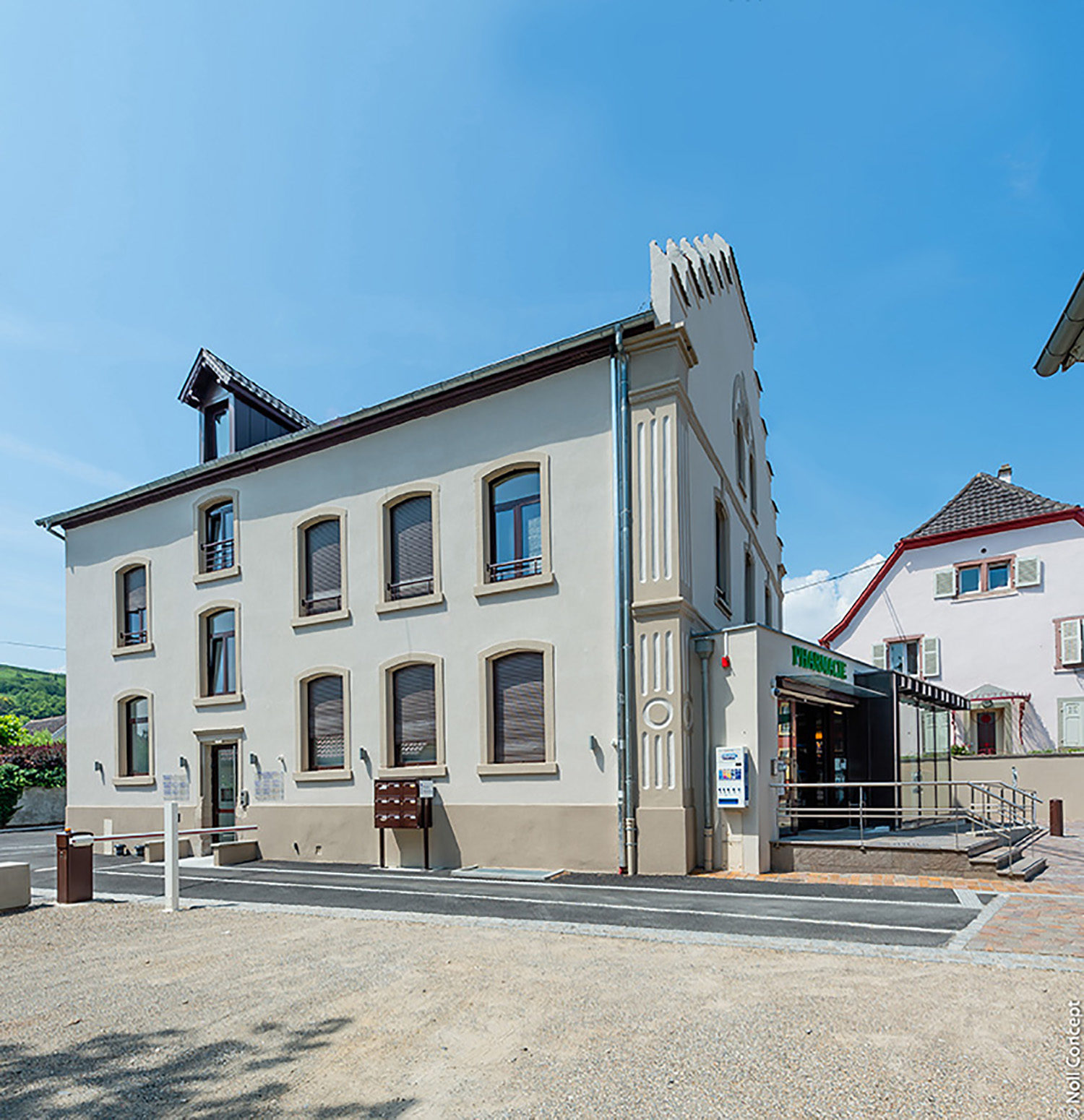 Marché public de réhabilitation d’un bâtiment public transformé en Pôle Médical. Le projet a été mené en intégralité par NollConcept, de la phase architecturale comprenant la construction d’une extension et l’aménagement urbain jusqu’à la livraison des locaux aménagés, soit cabinets médicaux et pharmacie.